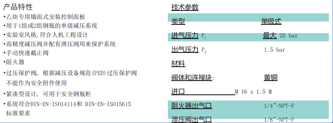 乙炔压力控制面板BM 65